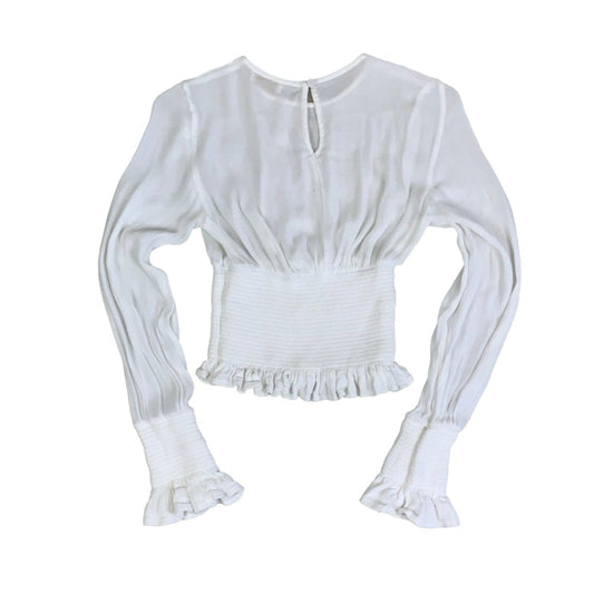 Vintage Y2k ‘Kookaï’ White Frill Long Sleeve Shirred Boho Blouse 4 XS