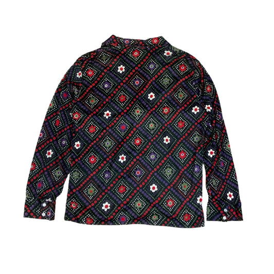 Vintage 70s 80s 'California Casualaire' Black Purple Red White Floral Dot Pattern Long Sleeve Blouse 18 20 L
