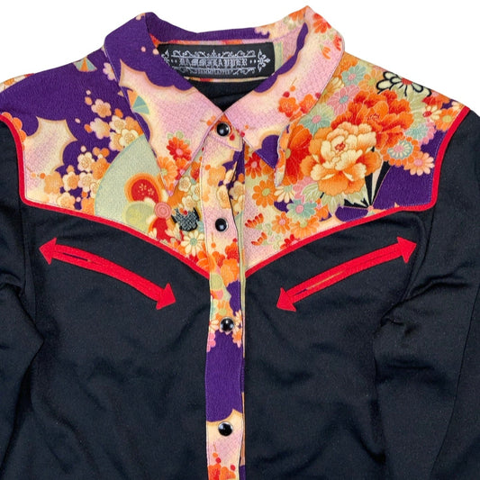 Vintage 60s 70s ‘Dammflapper’ Black Red Floral Shirt Blouse XS 6 8