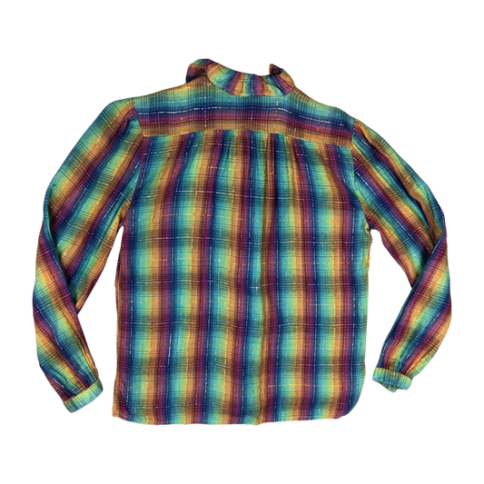 Vintage 80s 90s Plaid Print Multicolour Blouse 8