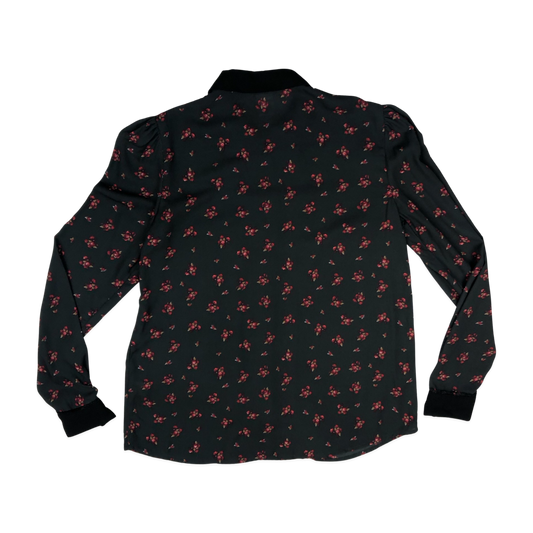 Vintage 90s Y2K Black Floral Print Blouse 8