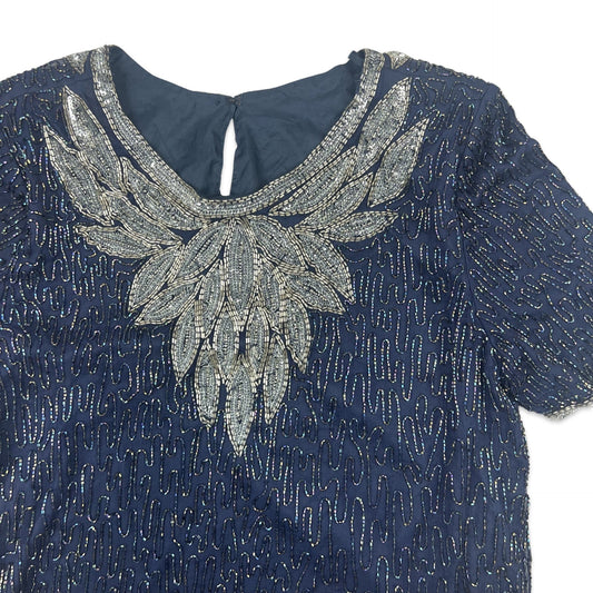 Vintage 80s Boxy Oversized Sequin Blouse Blue 14