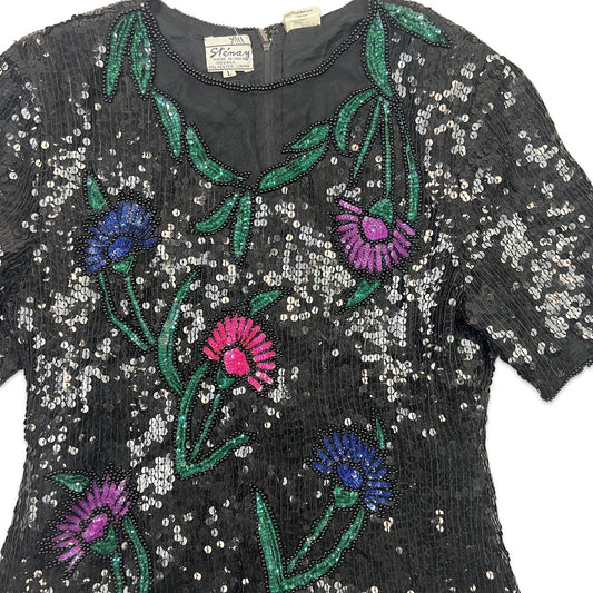 Vintage 80s Sequin Blouse Black Blue Green Gold 8 10
