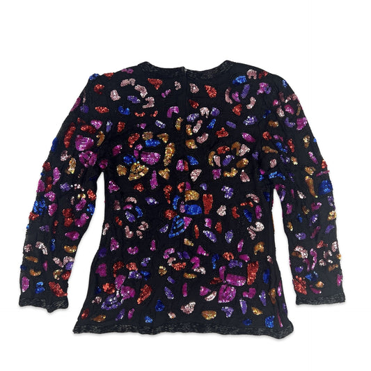 Vintage 80s Sequin Blouse Black Pink Blue Red 10 12