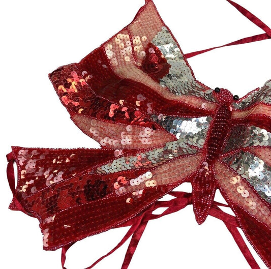 VTG 70s style 90s Y2K Red Embellished Disco Sequin Party Butterfly Top 8 10 S