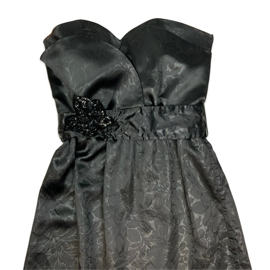 90s Black Satin Strapless Maxi Dress 10