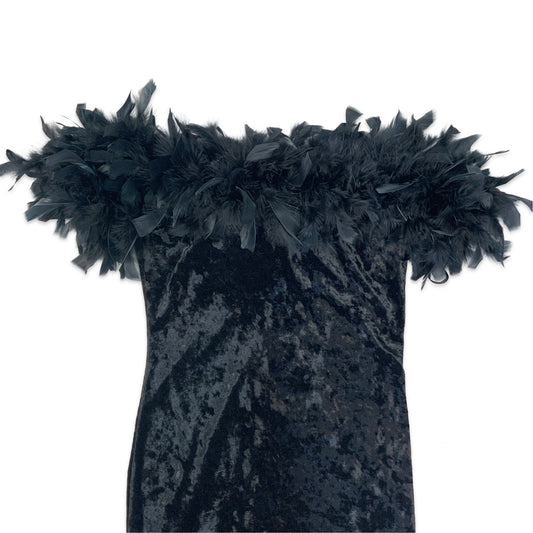 90s Black Velvet Feather Mini Dress 10 12