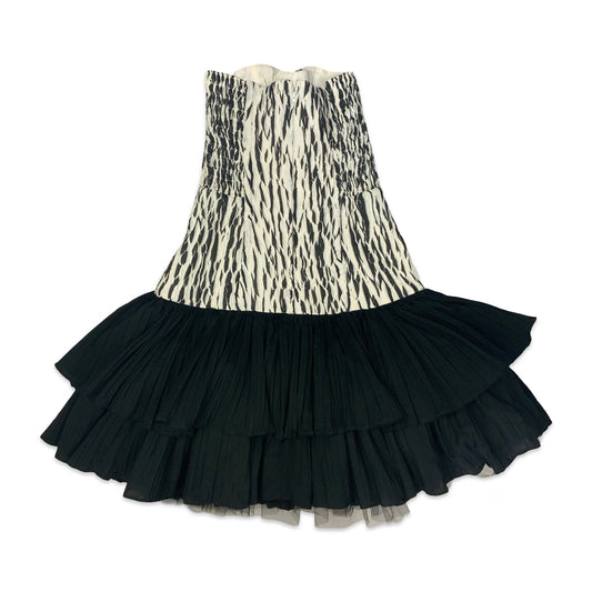 90s Black & White Drop Waist Pleated Mini Dress 6 8