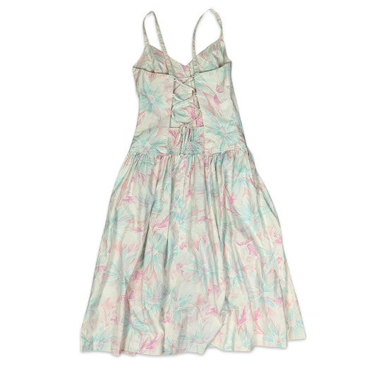 Vintage Pastel Coloured Floral Print Strappy Maxi Dress 4 6