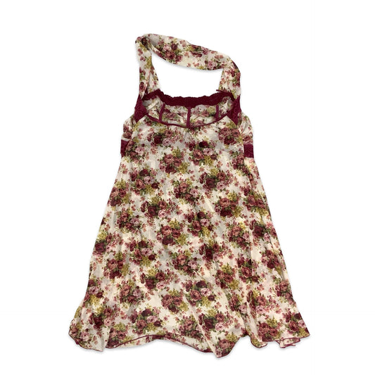 Vintage White & Pink Floral Halter Neck Dress 10 12 14