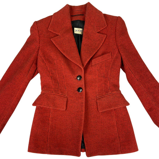 Vintage 90s 00s Red JOOP! Chequered Wool Womens Blazer