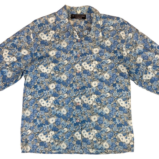 Vintage 90s Blue Grey La Chemiserie Cacharel Floral Patterned Button Up Shirt M