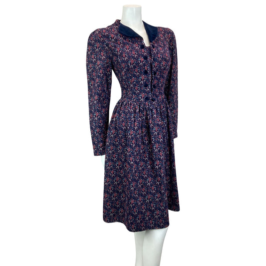 Vintage 70s 80s Navy Laura Ashley Paisley Cord Mid Length Prairie Dress S 8 10