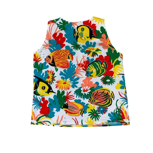 VTG 90S TROPICAL FISH COLOURFUL GRAPHIC OCEAN TANK TOP BLOUSE SMALL 10