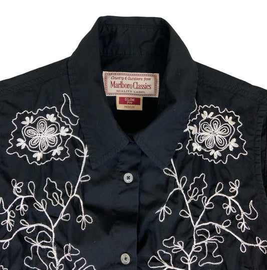 VTG 90S MARLBORO CLASSIC BLACK WHITE EMBROIDERED SLEEVELESS BLOUSE SMALL 8