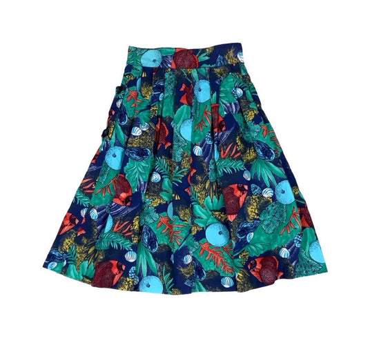 VTG COLOURFUL UNDERWATER-THEMED PRINT FISH SEA LIFE OCEAN BUTTON DOWN SKIRT XS 4