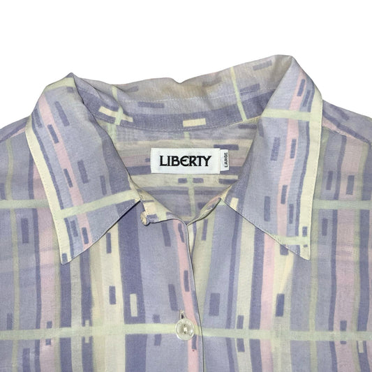 VTG 'LIBERTY' PURPLE WHITE PINK STRIPED GEOMETRIC PATTERN OVERSIZED BLOUSE L 16