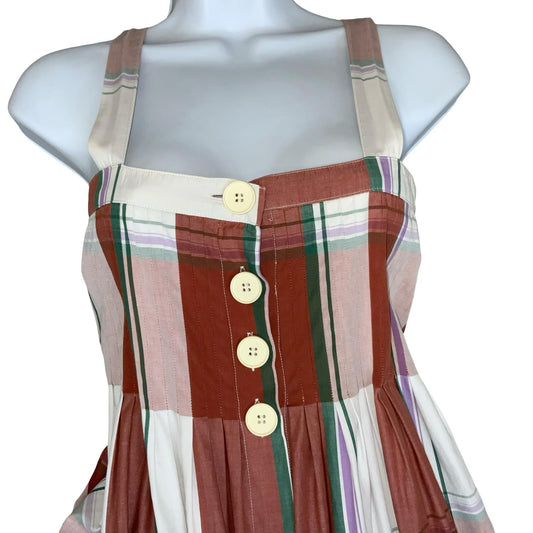 VTG 'CACHAREL' TARTAN RED WHITE PINAFORE STYLE POCKETS ELEGANT SUNDRESS S 8