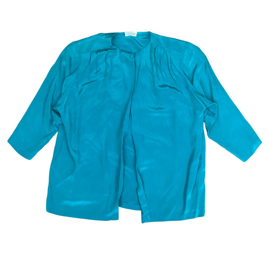 VTG 80s 'LOUIS FERAUD' PARIS TEAL BLUE OPEN BLOUSE SHACKET 100% SILK UK 16