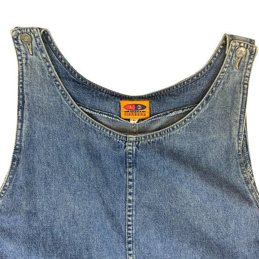 Vtg Y2K 'Fishbone' Blue Denim Relaxed Dungarees-Style Pinafore Mini Dress UK10