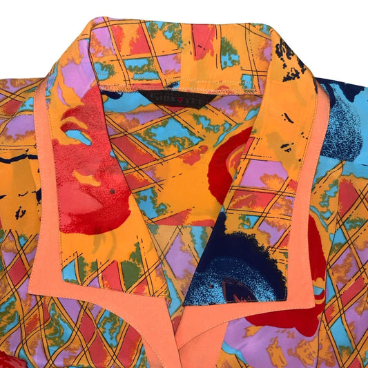 Vtg 'Shik Yee' Orange Blue Geometric Graphic Marilyn Monroe Art Shirt Blouse XL