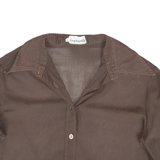 VTG 80s 90s 'CARCHAREL' BROWN SMART CASUAL BUTTON-DOWN LONG SLEEVE BLOUSE M 14