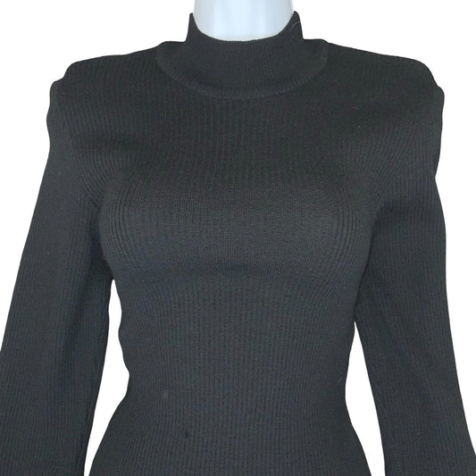 'Miss Chloe' Black French Luxury Designer Classic Fitted Ribbed Midi Dress UK 8