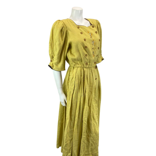 Vintage Yellow Authentic Tyrolean Dirndl Short Sleeve Button Up Maxi Dress M