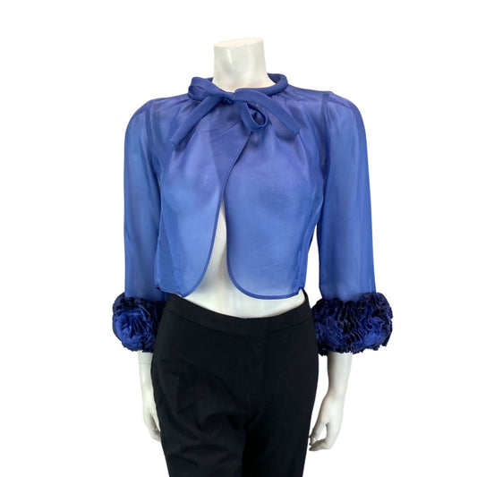 VINTAGE 80S BLUE SHEER FLROAL PARTY DISCO BOLERO STATEMENT SHRUG 8 10 S