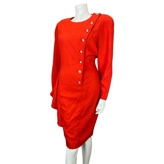 Vintage 80s Red Guy Laroche Working Girl Ruffle Suit Dress 12 14 M