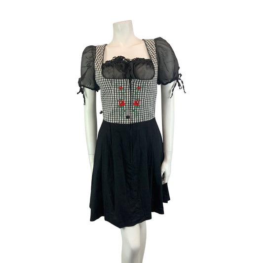 Vintage 90s 00s Black White Landhaus Gingham Embroidered Sheer Dirndl Dress S