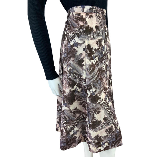 VINTAGE 70s 80S PURPLE GREY GRAPHIC HORSE RIDING SWING MIDI SKIRT S 8 10