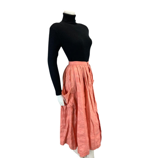 VINTAGE 80S PEACH PINK CREAM SWING BUTTON DOWN MIDI SKIRT 8 10 S