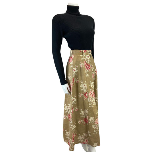 VINTAGE 80S BEIGE PINK LAURA ASHLEY FLROAL BUTTON DOWN MAXI SKIRT 8 S