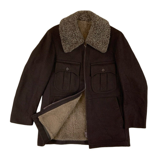 Vintage Brown Faux Fur Wool Jacket 10 12