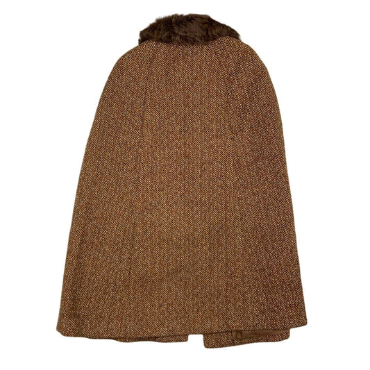 Vintage Faux Fur Collared Wool Tweed Cape 14 16