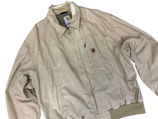VTG Y2K USA CARHARTT DUCK CANVAS DISTRESSED WORKWEAR JACKET BEIGE 2XL