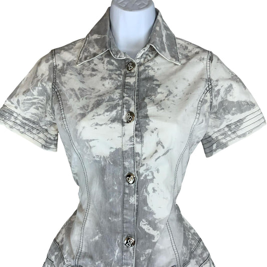90S Y2K 'DOLCE & GABANNA' CARGO GREY WHITE TIE-DYE GRUNGE MINI DENIM DRESS S 10