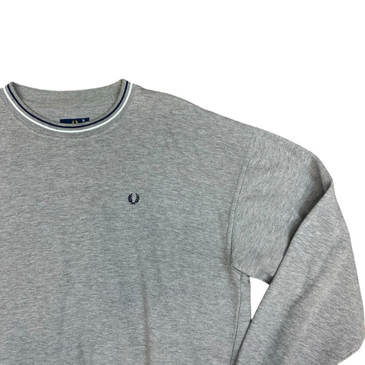 Y2K Fred Perry Grey Sweater Jumper Crewneck Pull-Over Casual Retro Extra Large