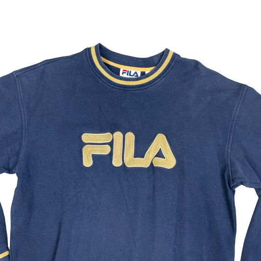 Y2K Fila Retro Navy Embroidered Spell-Out Crewneck Sweater Jumper Large
