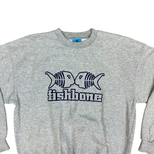 Y2K Fishbone FSBN Grey Embroidered Big Spell-Out Logo Crewneck Sweater Medium