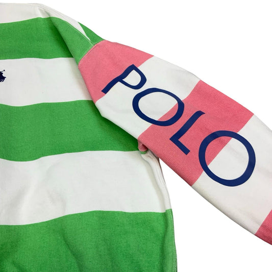 Y2K Polo Ralph Lauren Womens Striped Blue Green Pink Sweat Crewneck Jumper Lrg