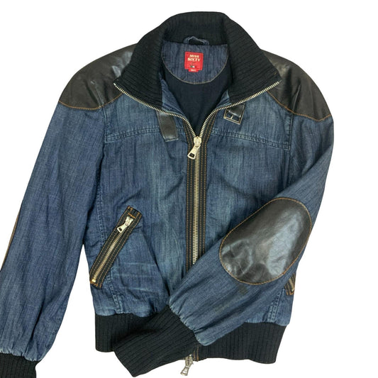 VTG Y2K 'Miss Sixty' RARE Blue Faded Denim Cropped Bomber Zip-Up Jacket UK 10/12