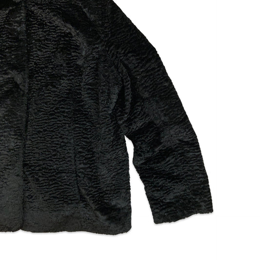 Vintage Y2K Black Cropped Faux Fur Jacket 6 8 10