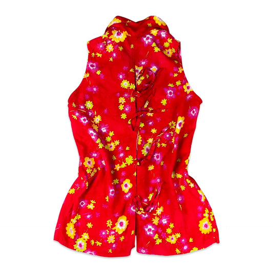 Vintage Y2K Red & Yellow Floral Print Sleeveless Blouse 8 10