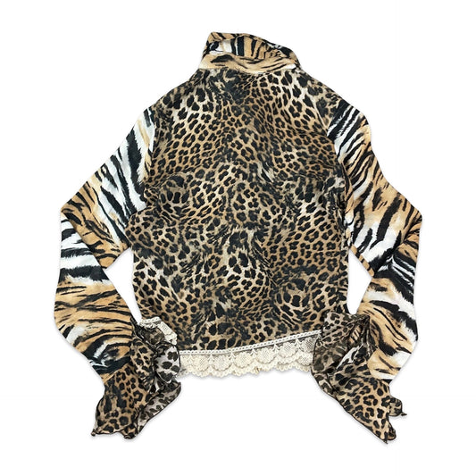 Vintage Y2K Orange & Black Frilly Animal Print Blouse 12 14