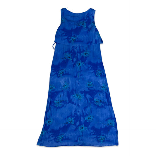 Y2K Blue Floral Sleeveless Maxi Dress 10 12