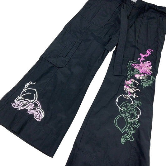 Vintage Y2K 90s Maxi Me Black Japanese Embroidered Cargo Joggers 36W 30L
