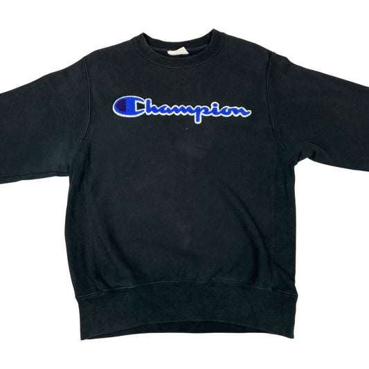 Vintage 00s Y2k Black Blue Spellout Champion Crewneck Jumper M