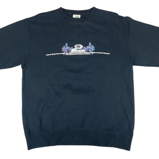Vintage 00s Y2K Black Piko Hawaiian Printed Glittery Floral Graphic Jumper L